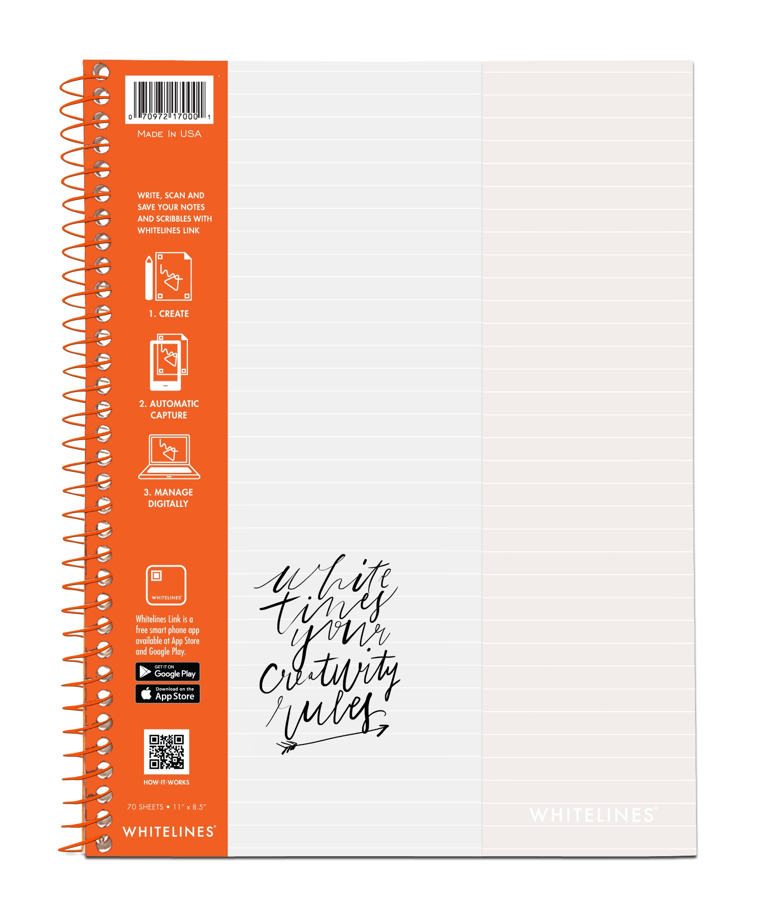 Whitelines® Paper is expertly and creatively designed to offer a pleasing to the eye color and lines or grids to keep your written notes perfectly formatted. Whitelines® Paper also works in conjunction with Whitelines® Link app.