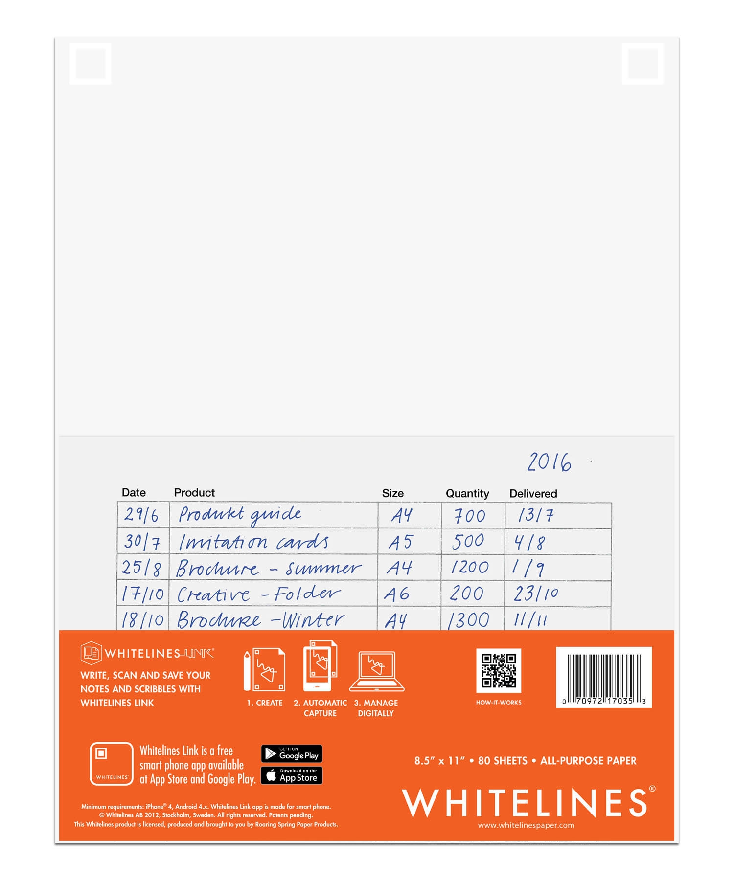 Whitelines® Link app is a new innovation that brings paper and digital technology together. Download the free Whitelines® Link app on your Apple or Android phone or tablet and start turning your hand written notes and sketches from Whitelines® Paper into digital files.